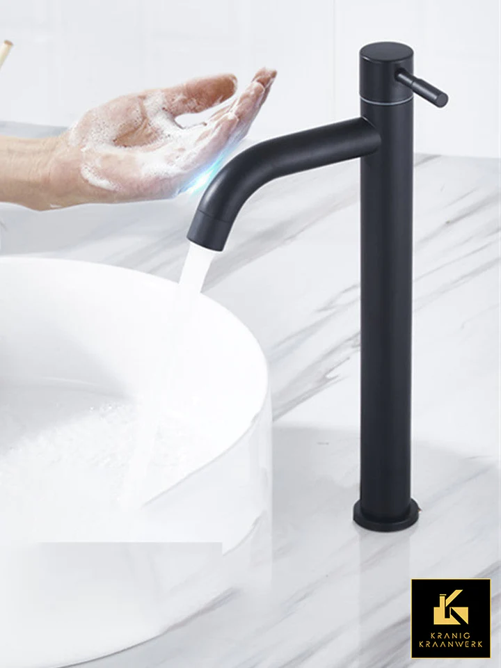 Contact Sensor tap | Touch-less | Basin and basin tap | Sensor tap | Cold water tap | Darento | Matt black 22cm low model