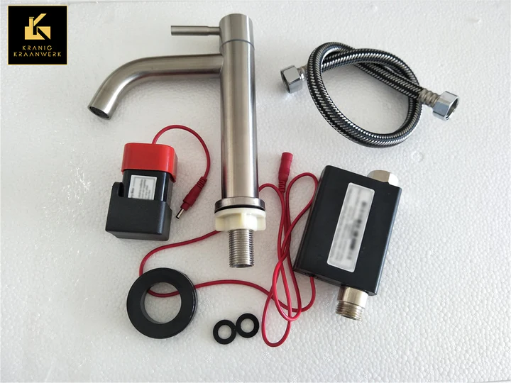 Contact Sensor tap | Touch-less | Basin and basin tap | Sensor tap | Cold water tap | Darento | Brushed Steel 30cm high model