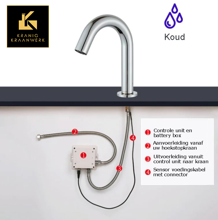 Robinet design sans contact | Toilettes | Robinet à capteur | Robinet d'eau froide | Ultima | Noir