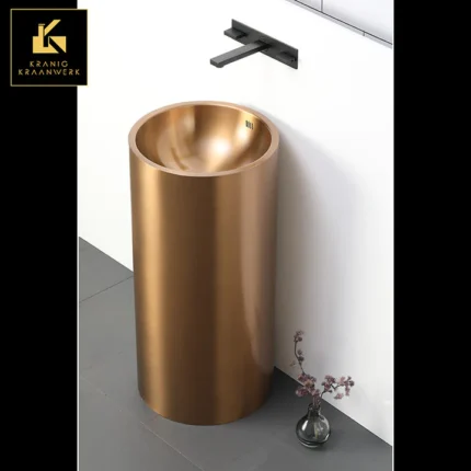Badkamer | Waszuil | Staande wasbak | Vrijstaande fontein | De verzuiling/ Geborsteld goud-Basis-met toebehoren in kleur