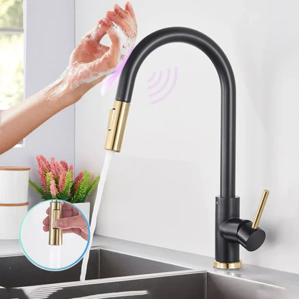 Keukenkraan met Sensor | Uittrek slang | Daniel’s broer/Mat zwart met accenten van goud