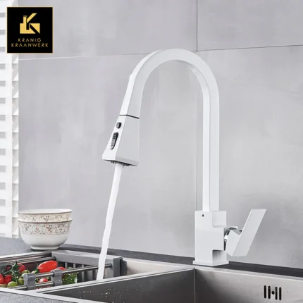 Sensorkraan Keuken | Uitzonderlijke keukenkraan | Kraan met uittrekslang | Boxes all around/Wit met sensor