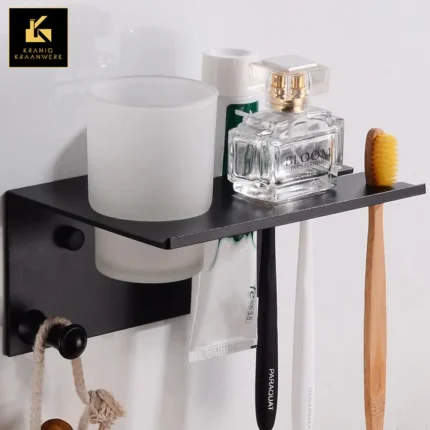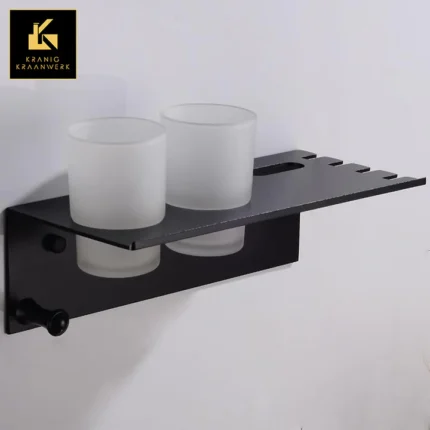 Badkamerplankje met bekers en tandenpoetsrek | Mooie plek voor je tandenborstel