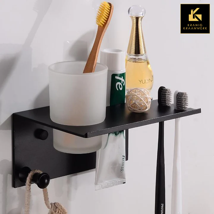 Badkamerplank met tandenpoetsrek | Mooie plek voor je tandenborstel