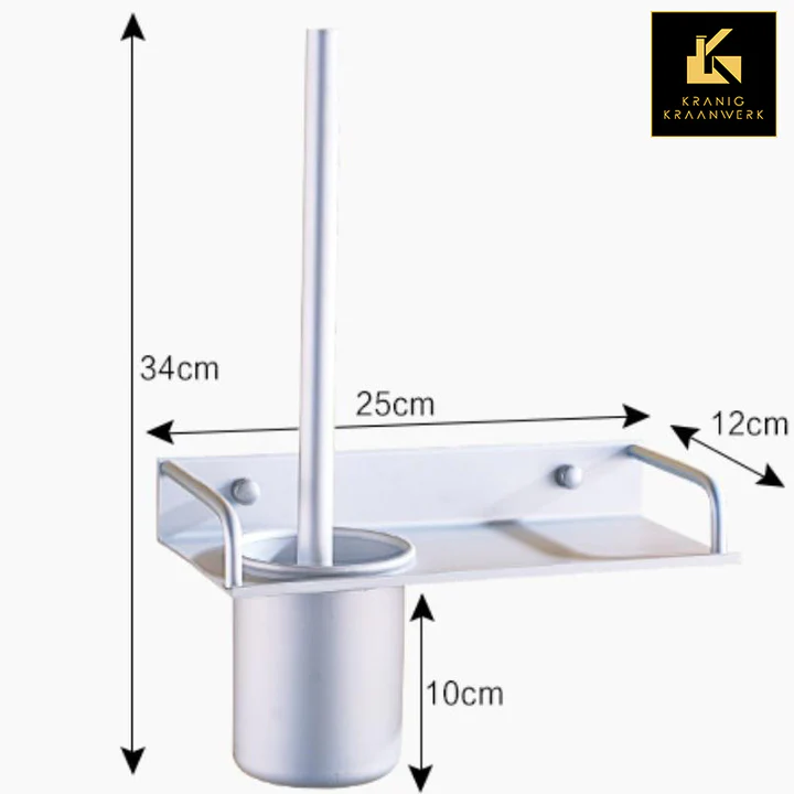 Toiletborstel met houder, plankje en railing | Aluminium