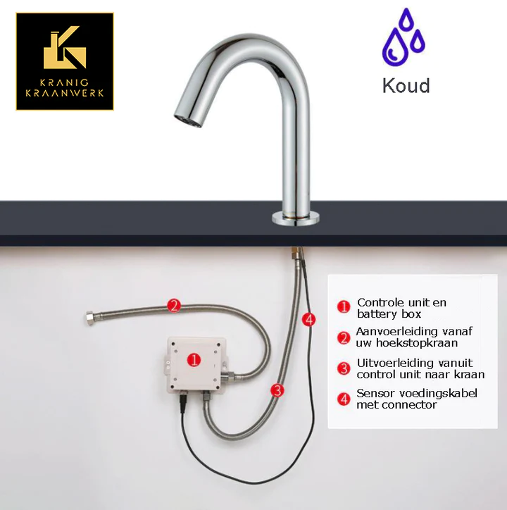 Touchless Design kraan | Toiletruimte | Sensorkraan | Koud waterkraan | Ultima | Geborsteld staal RVS