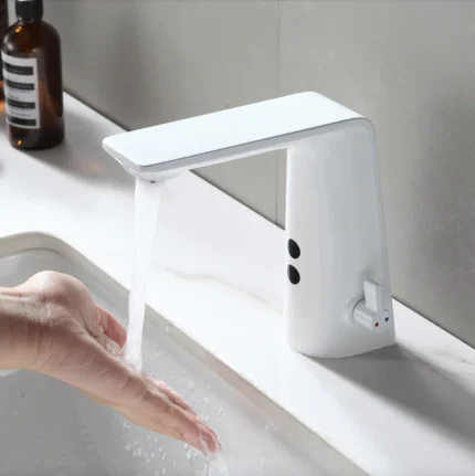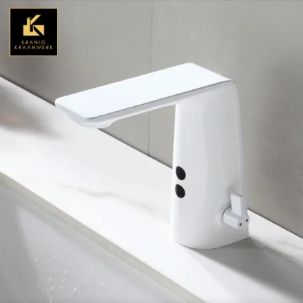 Touchless Design Mengkraan | Sensorkraan | Wastafel en fonteinkraan | Toiletruimte | Koud/warm waterkraan | Gun metal | Warm en koud | Alexis/Wit