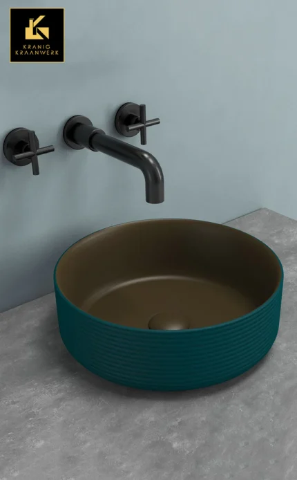 Badkamer | Wasbakken | Fonteinschaal | Wasschaal vrijstaand | Binnen Groen met Witte welvingen