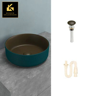 Badkamer | Wasbakken | Fonteinschaal | Wasschaal vrijstaand | Bruin met groene randen